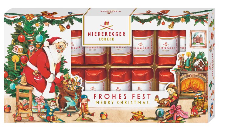 Niederegger’s holiday range centers on premium marzipan confections, making it especially popular during the Christmas season. Their festive items include beautifully packaged pralines, seasonal gift boxes, and decorative treats, all crafted with a high almond content and often coated in rich dark or milk chocolate for a balanced flavor.